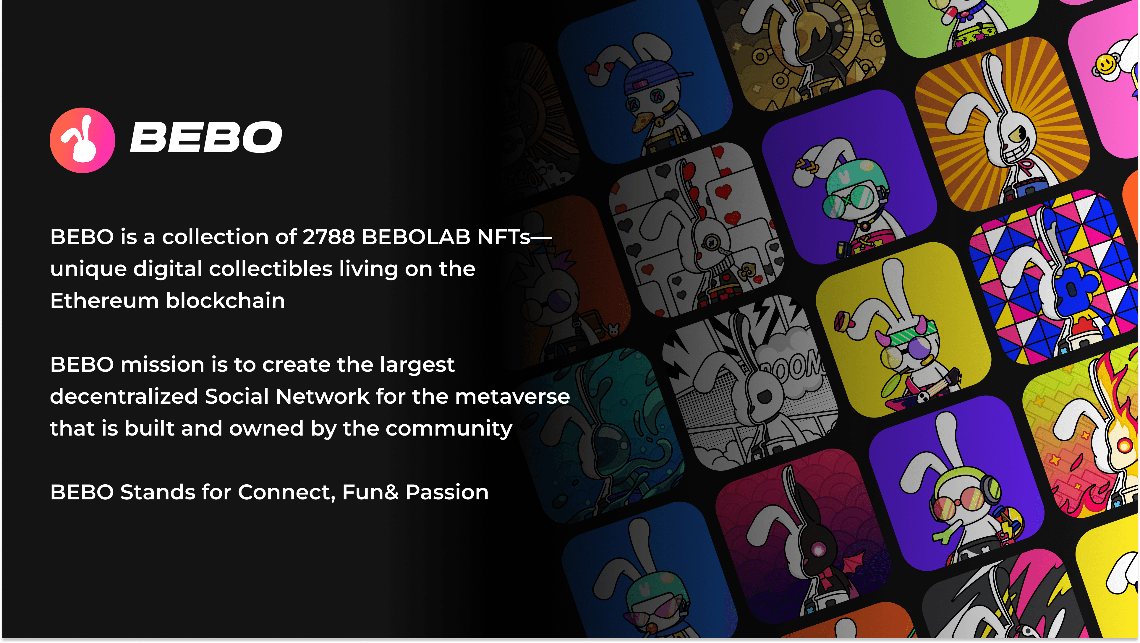 BEBO mission is to create the largest decentralized Social Network for the metaverse that is built and owned by the community